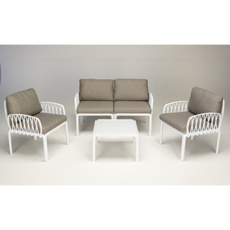 tipologia: salotto in polipropilene fiberglass trattato anti-UV, composto da 2 poltrone, 1 divano a 2 posti e 1 tavolino. Prodotto in Italia. colore: bianco, antracite, juta, moka. dimensioni divano (cm): 128 x 67 x h 80 dimensioni poltrona (cm): 67 x 67 x h 80 dimensioni tavolino (cm): 62 x 62 x h 40