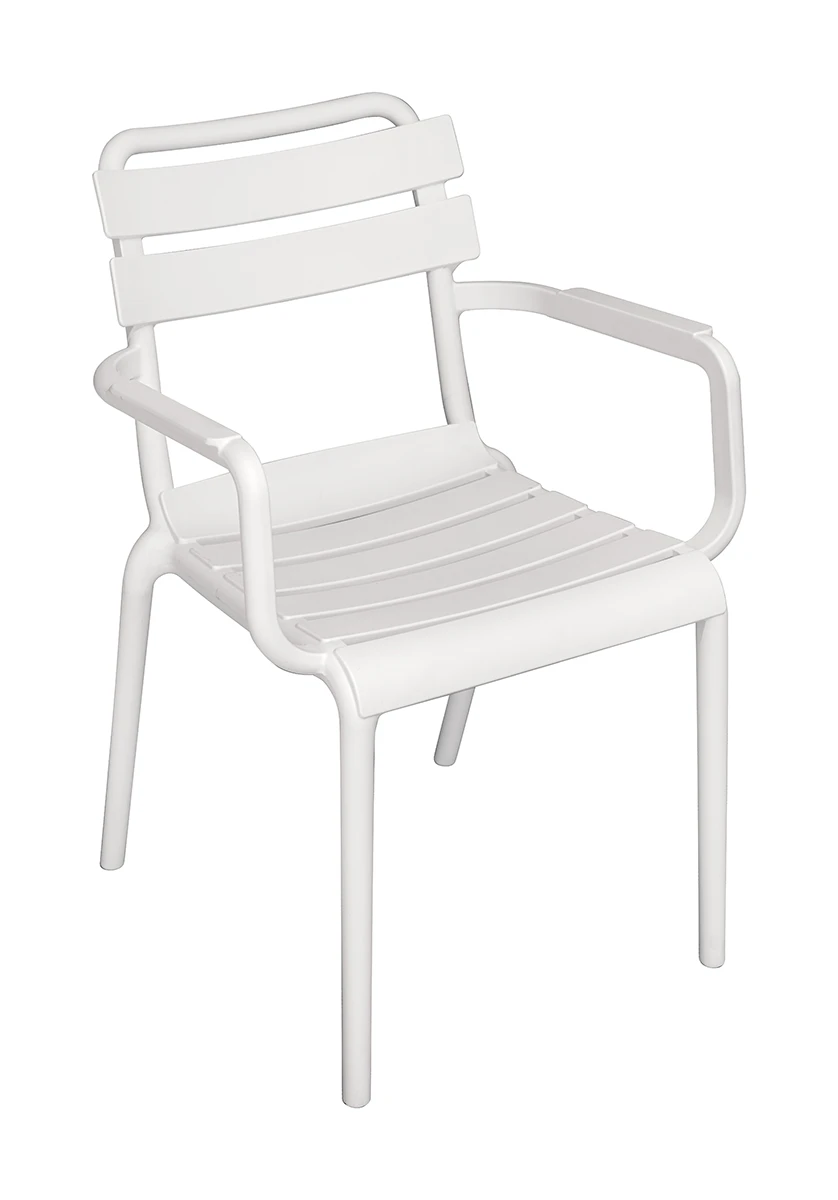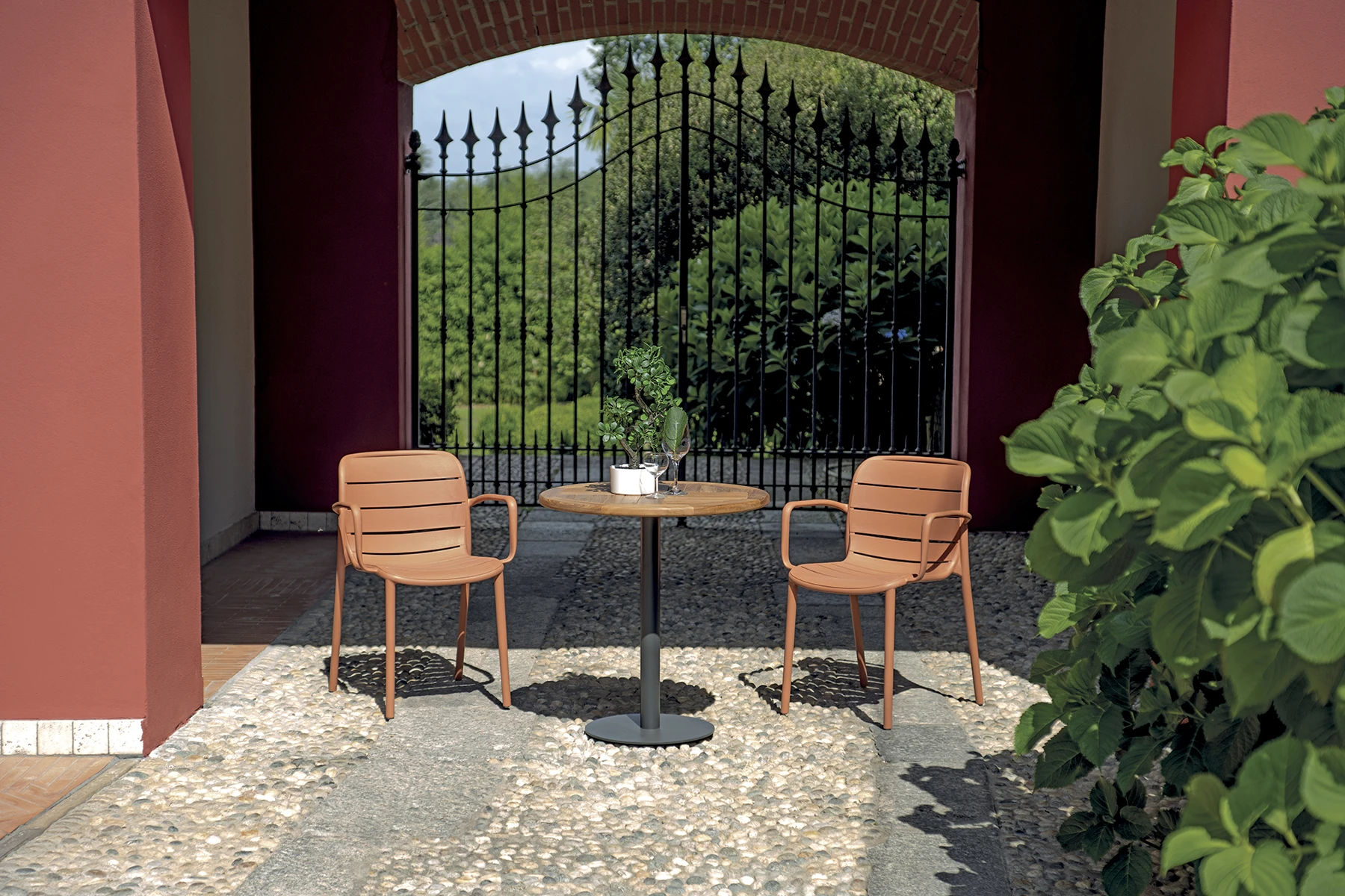 tipologia: poltrona in plastica (polipropilene) di alta qualità con fibra di vetro, trattata anti-UV, dotata di piedini antiscivolo. Impilabile.