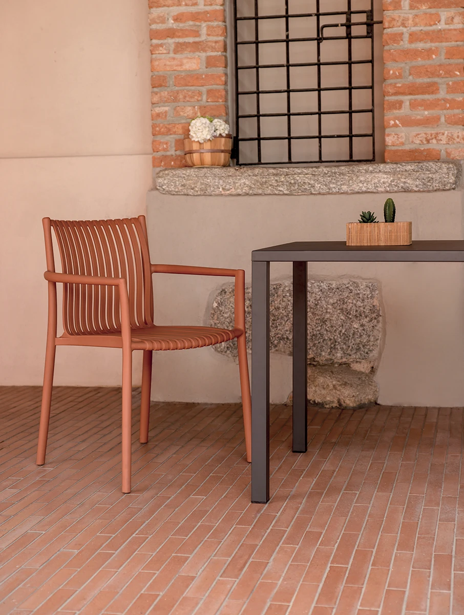 tipologia: sedia con struttura in polipropilene fiberglass anti-UV. Impilabile.