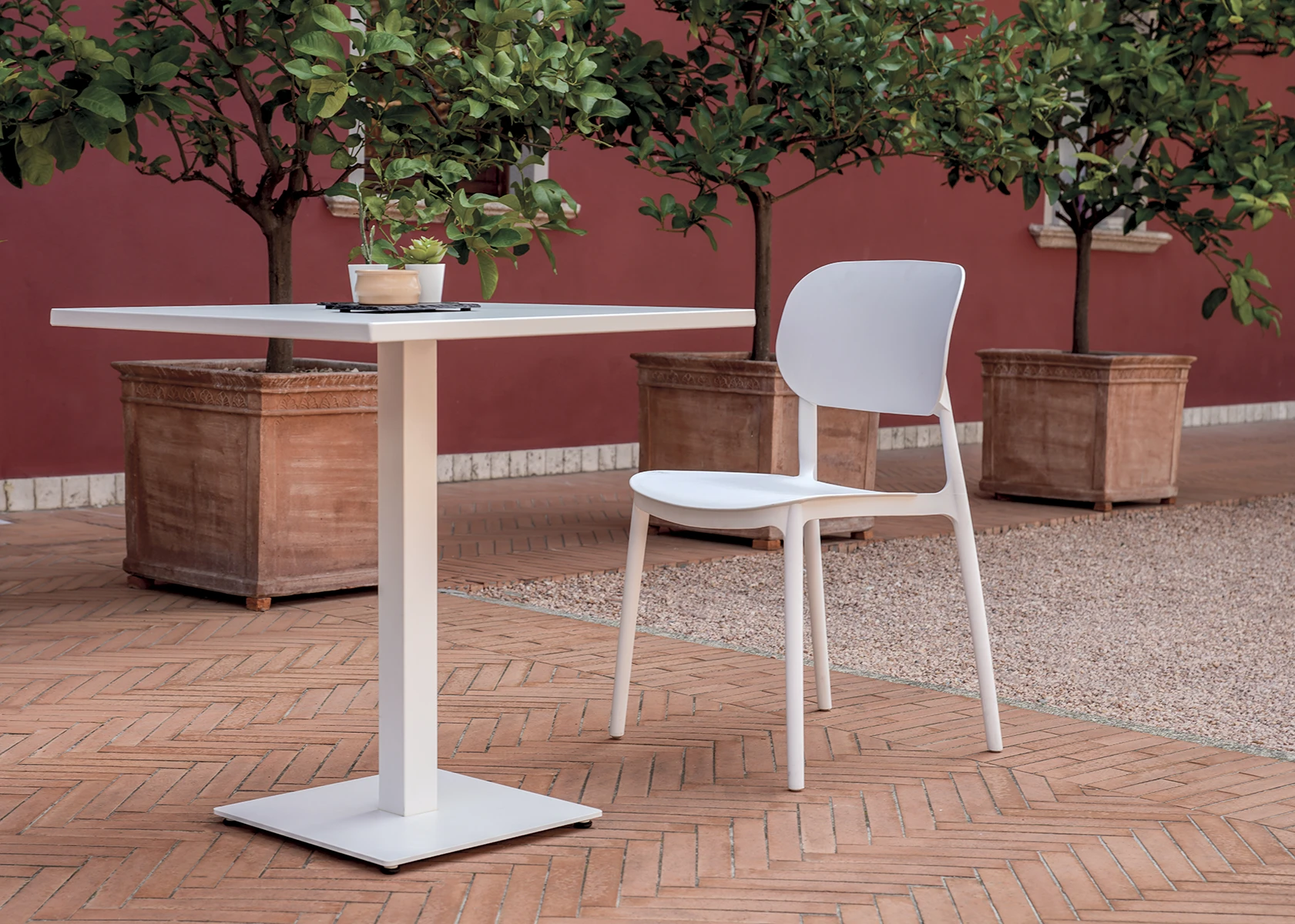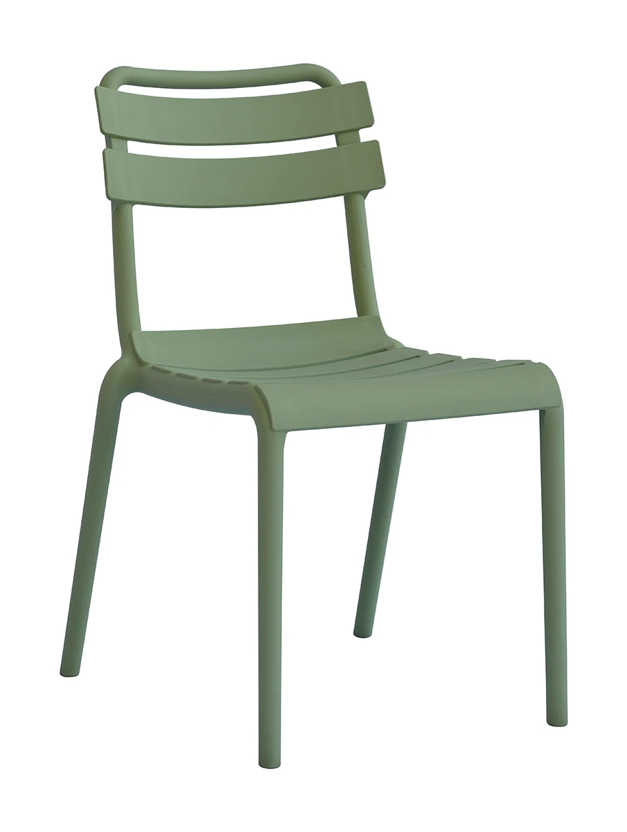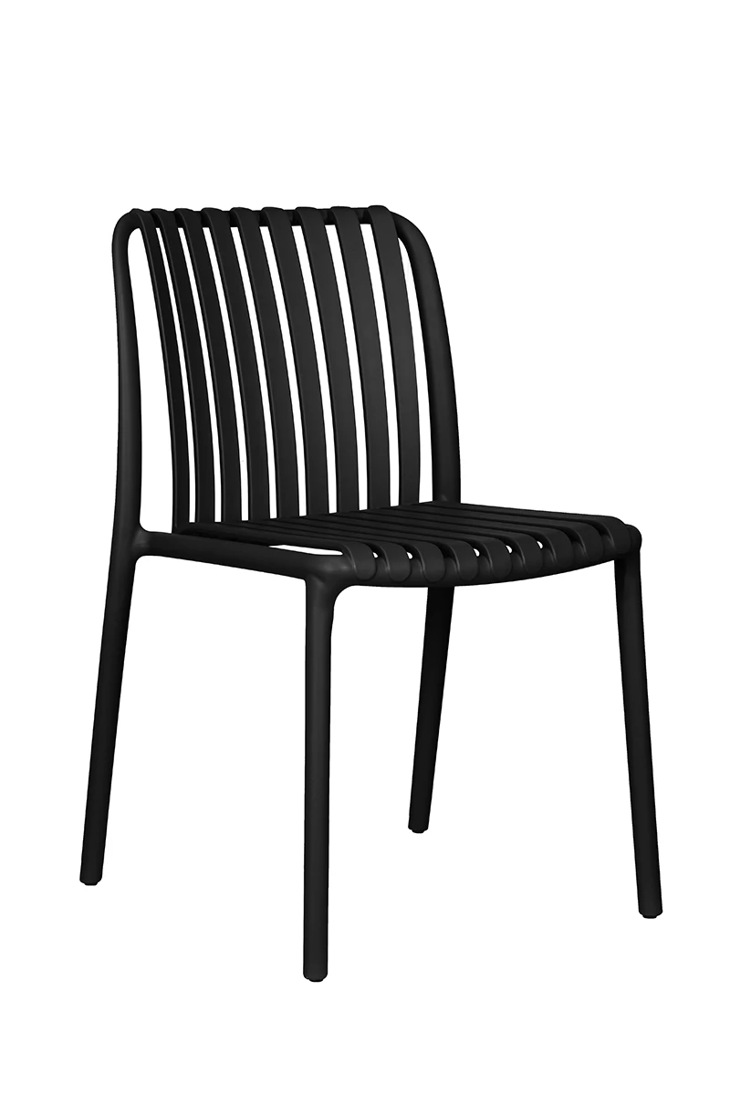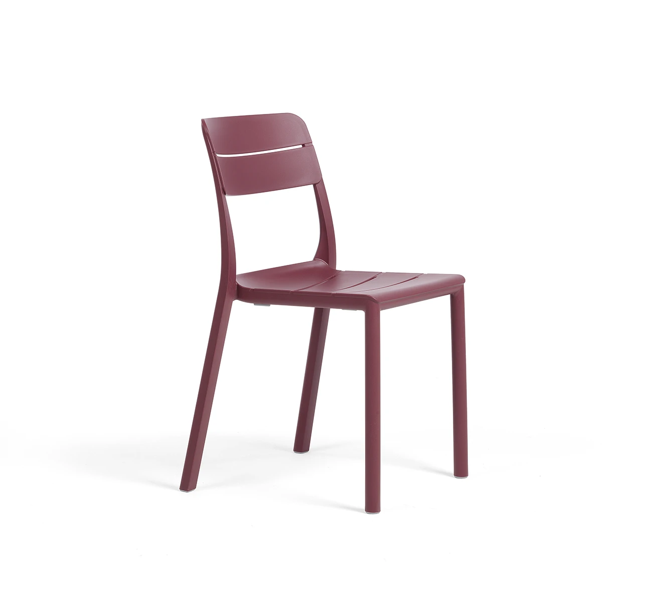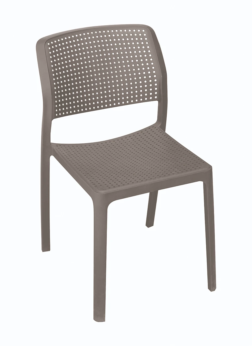 tipologia: sedia in plastica (polipropilene) con fibra di vetro trattato anti-UV e colorato in massa, piedini antiscivolo.