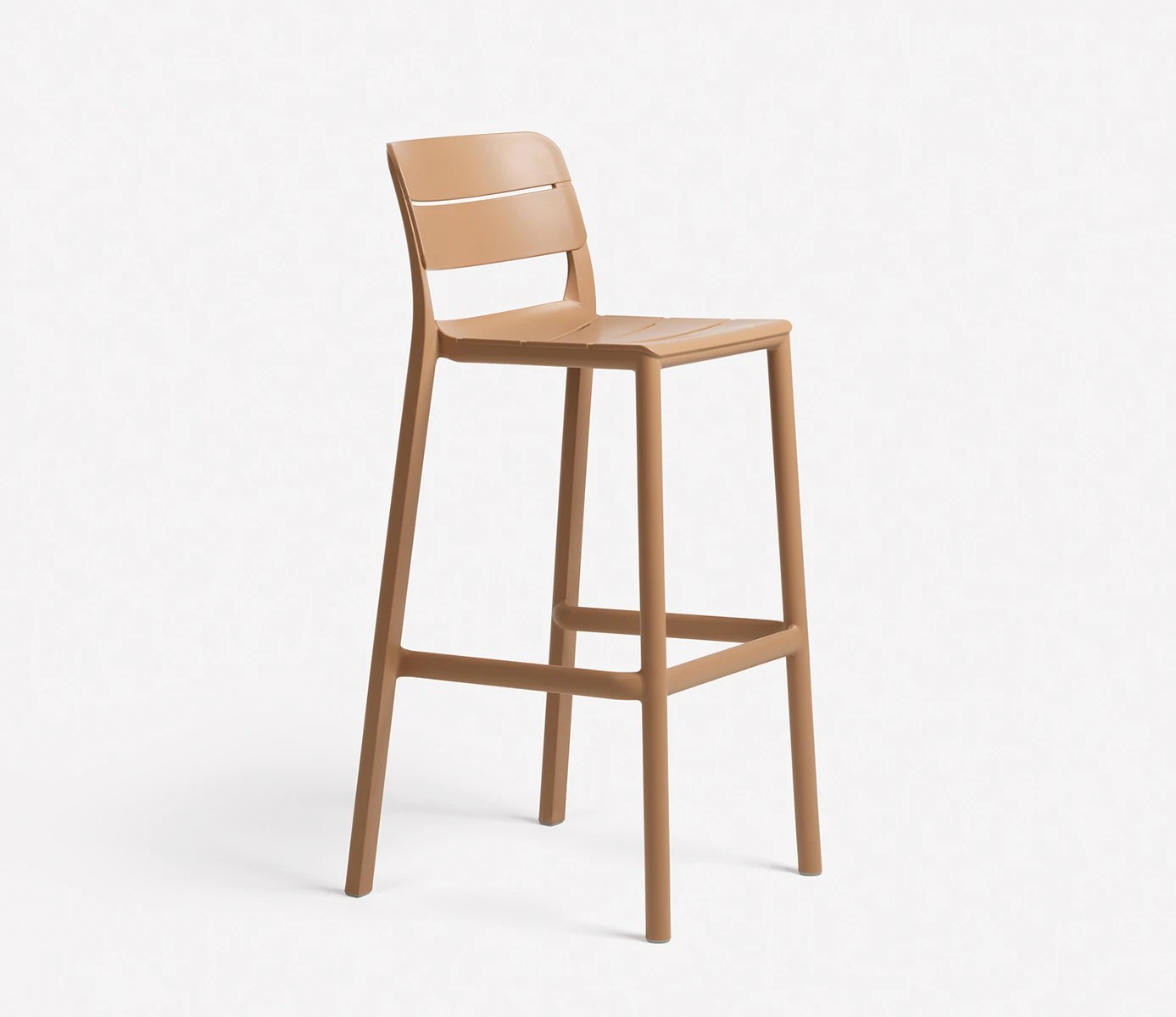 tipologia: sgabello in polipropilene fiberglass anti-UV e colorato in massa, dotata di piedini antiscivolo.